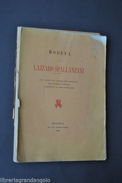 Vedere la descrizione dettagliata Modena a Lazzaro Spallanzani" nel giorno XXI ottobre MDCCCLXXXVIII Inaugurandosi a Scandiano il Monumento al Sommo Naturalista Tipografia Namias, Modena 1888; 26x18 cm; pp. 90. Brossura ed. Condizioni di conservazione Esemplare in discreto stato di conservazione con tracce d'uso e del tempo. Danni al dorso con piatti praticamente staccati, Mancanze. danni alla brossura con mancanza dell'angolo superiore. Legatura sconnessa. Interni buoni.Inaugurazione del monumento a Spallanzani. Per altri volumi e documenti su questo e altri argomenti visitate il nostro negozio "Libreria Grandangolo" Data l'importanza delle 5 stelle rilasciate durante l'assegnazione del feedback, invitiamo tutti gli acqirenti, se soddisfatti del loro acquisto, a rilasciare tutte le 5 stelle. La mancanza anche solo di una stella illuminata è molto lesiva per noi venditori professionali. Grazie! CONDIZIONI DI VENDITA Spedizione Fino a 5 kg piego di libri raccomandato, oltre i 5 kg pacco postale. Si ricorda che l'imballo viene eseguito con la massima cura. La merce viene spedita a pagamento avvenuto e viaggia a rischio e pericolo dell'acquirente. Per maggiori informazioni vedi la pagina SPEDIZIONI del nostro negozio. Ritiro diretto Siamo disponibili per il ritiro diretto a Modena e a Milano. Per gli indirizzi delle sedi vedi la pagina DOVE SIAMO del nostro negozio. Acquisti multipli Se si acquistano più libri, la spedizione si paga una sola volta, purché si rispettino gli scaglioni di peso. Estero / Foreign For international shipment, please contact us. Metodo di pagamento Pay Pal, bonifico bancario, versamento postale (cc/p, vaglia o altro). La spedizione avverrà entro i primi 4 giorni lavorativi dopo la conferma di avvenuto pagamento. Si emette ricevuta fiscale e a richiesta fattura. Il pagamento deve essere effettuato entro 7 giorni lavorativi dalla data di acquisto, trascorsi i quali l'oggetto sarà rimesso in vendita. Feedback Viene rilasciato dall'acquirente dopo il ricevimento di quanto acquistato. Data la sua importanza, vi invitiamo a leggere il breve testo della pagina FEEDBACK del nostro negozio. Pertanto, in caso di qualsiasi problema, non esitate a contattarci. Diritto di recesso L'acquirente ha il diritto di restituire l'oggetto entro 14 giorni ed essere rimborsato, escluse le spese di porto e imballo. L'oggetto deve essere restituito, dopo previa comunicazione, imballato e nelle medesime condizioni di come era all'origine. Creato da Turbo Lister Strumento gratuito per mettere in vendita i tuoi oggetti. Metti in vendita i tuoi oggetti in modo facile e veloce e gestisci le inserzioni in corso. "