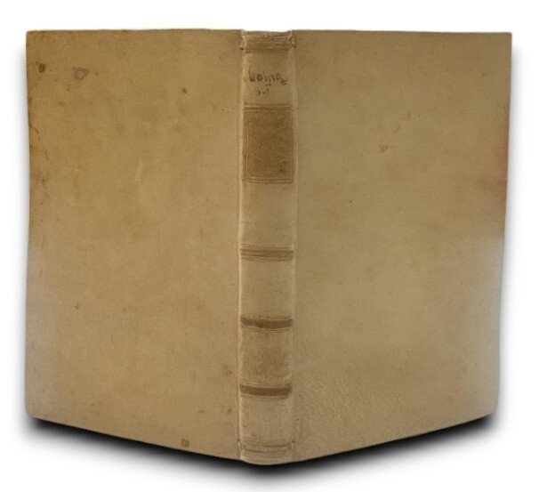 legatura in piena pergamena coeva con titolo in tassello al dorso, tagli blu