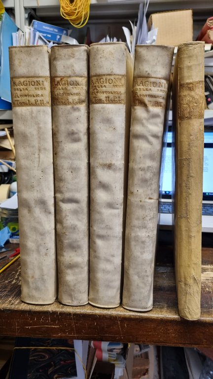 Scritture ed atti trasmessi d'ordine di nostro signore al sagro collegio concernenti le ragioni della sede apostolica nelle presenti controversie colla corte di Torino. Seguono riflessioni sopra la scrittura della corte di Torino intorno ai fogli di accomodamento i feudi ecclesiastici dell'Asteggiana, abbazia di S. Benigno e suoi feudi, ecc. Tomi 1 + 4.