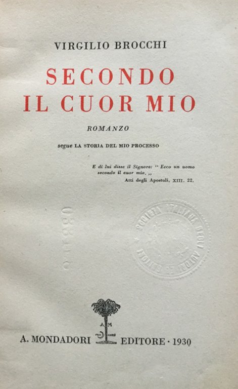 Secondo il cuor mio. Romanzo. Segue La storia del mio processo . (34^ migl.).