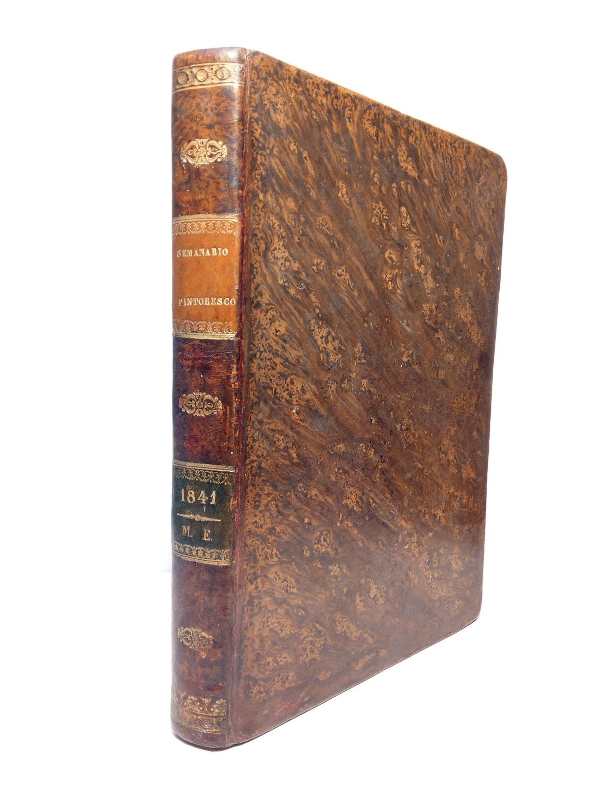 Madrid: Semanario Pintoreco Español - Imprenta de la Viuda de Jordán e Hijos, 1841.- 416 p., [1 h.]: Profusión de ilustraciones xilográficas intercaladas entre el texto y alguna lámina a toda plana; 4º mayor (28 x 20 cm); Enc. de la época en Plena Piel pasta española, lomo con 2 tejuelos.* Mínimas rozaduras en las tapas. Una esquina ligeramente erosionada. Mínimo ingerto de piel en un lateral del lomo. LITERATURA Y FILOSOFÍA ESPAÑOLAS DE LOS SIGLOS XIX-XXI Y SU HISTORIA EN GENERAL