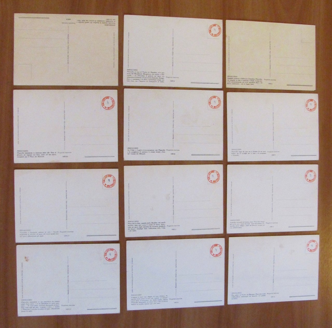 Serie Completa di 12 Cartoline PINOCCHIO, 1954 - NUOVE