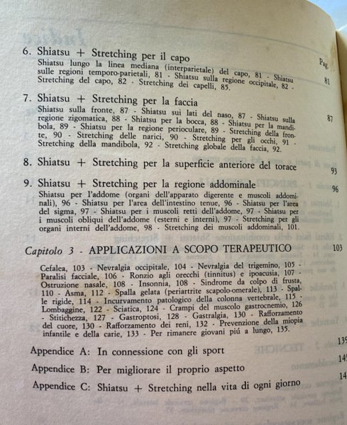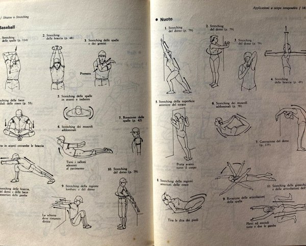 Soggetti: Salute, Benessere, Ginnastica, Tecniche di Stretching, Forma fisica, Diete, Massaggi, Mente, Corpo, Famiglia, Salute, Regione cervicale, Regione soprascapolare, Arti superiori, Sport, Superficie anteriore del torace, Faccia, Aspetto, Dorso, Shiatsu, Equilibrio fisico, Terapie alternative, Esercizi, Posizioni, Schiena, Core, Addominali, Polpaccio, Gastrocnemio, Stiramento muscolare, Rilassamento, Tecnica, Arti orientali, Giappone, Equilibrio fisico, Equitazione, Calcio, Corsa, Bicipite femorale, Quadricipite, Deltoidi, Spalle, Bicipiti, Tricipiti, Gemelli, Contrattura, Contrazioni muscolari, Indolenzimento, Dolore, Pausa, Respirazione, Dinamica, Manuali, Libri illustrati, Disegni, Libri Vintage Fuori catalogo, Collezionismo, Letteratura sportiva, Bibliografia, Classici, Forza, Pressione digitale, Asma, Punti di pressione, Collo, Clavicola, Vertebre lombari e toraciche, Vita quotidiana, Autoguarigione, Disturbi comuni, Principi, Regole, Riscaldamento, Cervicale, Lombalgia, Piedi, Mani, Viso, Occhi, Nevralgia del trigemino, Cefalea, Insonnia, Sciatica, Ipoacusia, Gastrite, Carie, Denti, Cefalea, Paralisi facciale, Anche, Cosce, Ciclismo, Nuoto, Baseball, Golf, Health, Wellness, Gymnastics, Stretching techniques, Fitness, Diets, Massages, Mind, Body, Families, Health, Cervical region, Suprascapular region, Upper limbs, Front surface of the thorax, Face, Appearance, Back, Physical balance, Alternative therapies , Exercises, Positions, Back, Abdominals, Calf, Gastrocnemius, Muscle stretch, Relaxation, Technique, Oriental arts, Japan, Physical balance, Riding, Kick, Run, Hamstring, Quadriceps, Deltoids, Shoulders, Biceps, Triceps, Twins, Contracture, Muscle twitching, Soreness, Pain, Pause, Breathing, Dynamics, Manuals, Picture books, Drawings, Out of print books, Collecting, Sports literature, Bibliography, Classics, Strength, Digital pressure, Asthma, Pressure points, Neck, Clavicle, Vertebrae Lumbar and thoracic, Daily life, Self-healing, Common ailments, Principles, Rules, Warming up, Neck, Back pain, Feet, Hands, Eyes, Headache, Insomnia, Sciatica, Hypoacusis, Gastritis, Caries, Teeth, Headache, Facial paralysis, Hips, Thighs, Cycling, Swimming