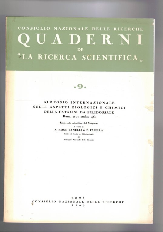 Simposio internazionale sugli aspetti biologici e chimici della catalisi da piridossale. Ott. 1962. Quaderno della Ricerca scientifica del C.N.R. n°9 del 1963. Edizione speciale fuori commercio.