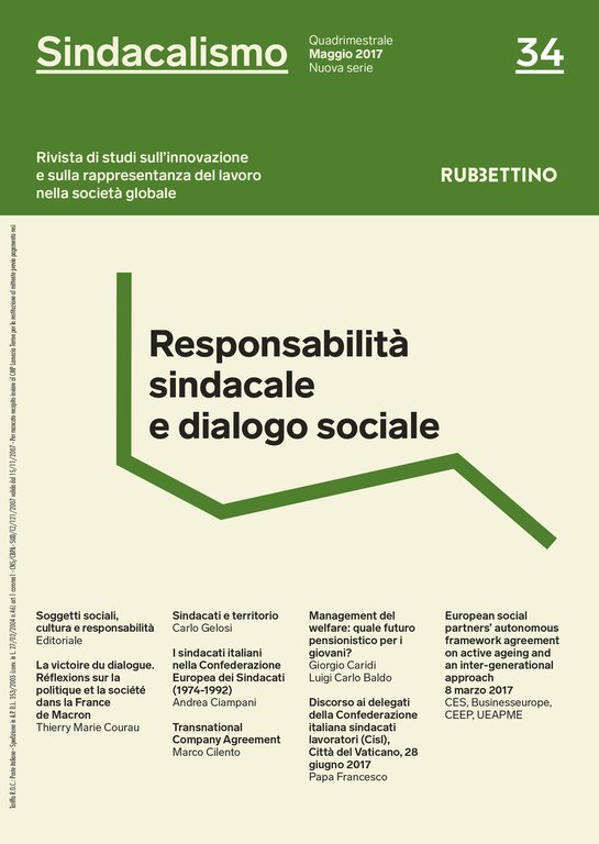Sindacalismo. Rivista di studi sull'innovazione e sulla rappresentanza del lavoro nella società globale. Vol. 34: Responsabilità sindacale e dialogo sociale (maggio)