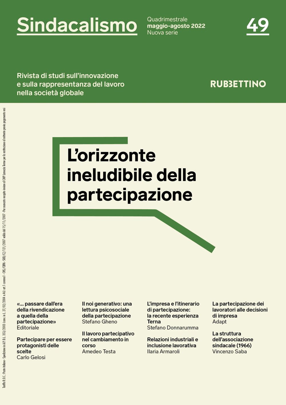 Sindacalismo. Rivista di studi sull'innovazione e sulla rappresentanza del lavoro nella società globale. Vol. 49