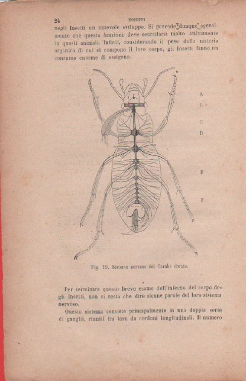 Sistema nervoso del Carabo dorato. Vecchia stampa