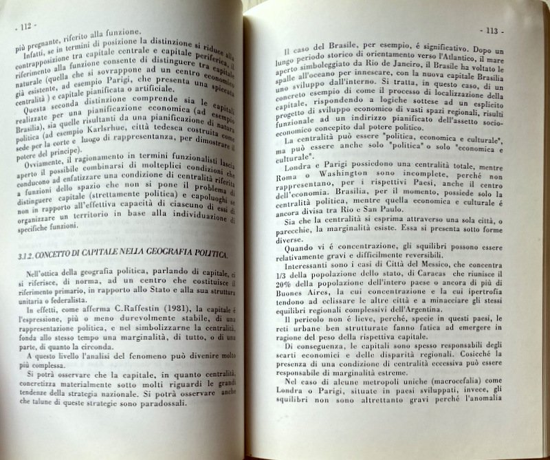 3.1.1 Introduzione 3.1.2 Concetto di capitale nella geografia politica 3.1.3 Città capitali specializzate 3.1.4 Ruolo delle città capitali 3.1.5 Città mondiali 3.1.6 Tecnopoli o poli tecnologici 3.1.7 Complessità del problema attuale 3.1.8 L'organizzazione politico-amministrativa dello stato italiano 3.1.9 Conclusioni