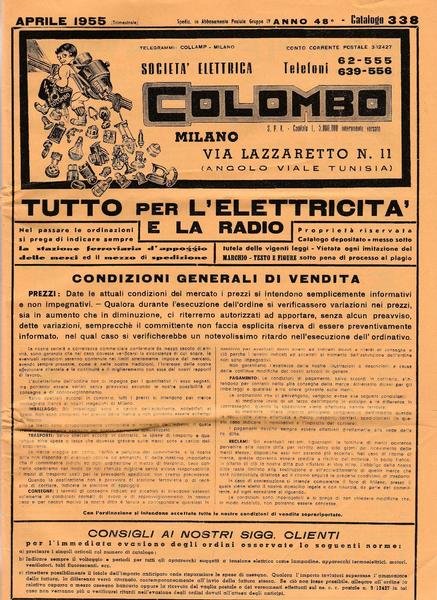 SocietÖ Elettrica Colombo Tutto Per L'elettricitÖ Catalogo Aprile 1955 L5506