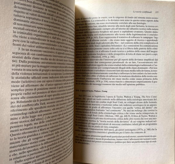 Soggetti: Società, Politica, Comunicazione, Sociologia, Criminologia, Antropologia, Analisi, Comportamento, Gruppi, Lifestyles, Devianze, Delinquenza minorile, Consumi, Dipendenze da alcol e droghe, Prostituzione, Norme, Scienze Politiche, Interventi, Operatori sociali, Criminalità, Teorie sociologiche, Individui, Utilitarismo, Funzionalismo, Costruzionismo, Filosofia sociale, Scuole di pensiero, Comportamento deviante, Darwinismo, Positivismo, Conflitti sociali, Violenza, Disadattamento, Crimini, Taylor, Walton, Young, Tomeo, Cuomo, Merton, Etica, Ohlin, Croward, Bande criminali, Manuali, Libri Vintage Fuori catalogo, Bibliografia, Studi culturali, Straniero, Razzismo, Discriminazioni, Minoranze, Antisemitismo, Xenofobia, Donne, Scuola di Chicago, Integrazione, Inclusione, Subculture giovanili, Anomia, Solidarietà, Interazionsimo, Sutherland, Marx, Engels, Bonger, Critica, Realismo, Sinistra, Dibattiti, Foucault, Sorvegliare e punire, Controllo, Stato, Legge, Giurisprudenza, Governo, Etichetttamento, Radicals, Cesare Beccaria, Durkheim, Determinismo, Lombroso, Etnometodologia, Processi di criminalizzazione, Diritto penale, Istituzioni totali, Goffman, Wacquant, Cressey, Pavarini, Ruggiero, Melossi, Colletti bianchi, Gabriel Tarde, Quinney, Talcott Parsons, Reati, Enrico Ferri, Senzatetto, Immigrati, Immigrazione, Bassifondi, Giovani, Bernard Lander, Clifford Shaw, McKay, Quartieri residenziali, Hoboemia, Kuhn, Paradigmi, Labelling Theory, Ribellione, Murdock, Society, Politics, Communication, Sociology, Criminology, Anthropology, Analysis, Behavior, Groups, Deviances, Juvenile Delinquency, Consumption, Alcohol and Drug Addiction, Prostitution, Norms, Political Science, Interventions, Social Workers, Crime, Sociological Theories, Individuals, Utilitarianism, Functionalism, Constructionism, Social Philosophy, Schools of Thought, Deviant Behavior, Positivism, Social Conflicts, Violence, Maladjustment, Crimes, Ethics, Criminal Gangs, Manuals, Out of Print Books, Bibliography, Cultural Studies, Foreigners, Racism, Discriminations, Minorities, Anti-semitism, Xenophobia, Women, School, Integration, Inclusion, Youth subcultures, Anomy, Solidarity, Interaction, Criticism, Realism, Left, Debates, Supervise and punish, Control, State, Law, Jurisprudence, Government, Labeling, Determinism, Ethnomethodology, Criminalization Processes, Criminal Law, Total Institutions, White Collar, Crimes, Homelessness, Immigration, Slums, Young people, Residential neighborhoods, Paradigms, Rebellion