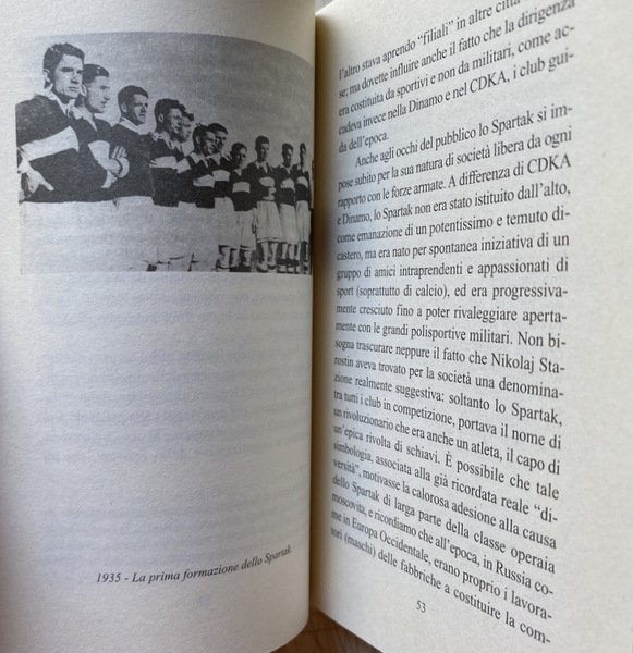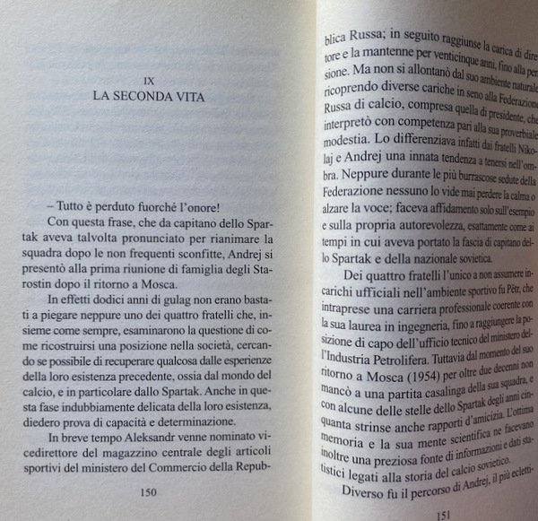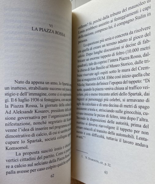 Soggetti: Sport, Biografie, Storie vere, Calcio, Comunismo, Unione Sovietica, Russia, Racconti, Memorie, Aneddoti, Calciatori russi, Aleksandr, Andrej, Pëtr, Nikolaj Starostin, Spartak Mosca, Krasnaja Presnja, Squadre sovietiche, Novecento, Moscova, Risse, Dorogomilov, Giovani moscoviti, San Pietroburgo, Partite, Passione calcistica, Gorjucka, Rivoluzione d'ottobre, Guerra civile, Fratelli Artem'ev, Kanunninkov, Vladimir Majakovskij, Futuristi, Professionismo, Pressioni politiche, Totalitarismo, Società polisportiva, Squadre militari, CDKA, Armata Rossa, Dinamo, Commissariato degli interni, Audacia, Fedeltà, Assalto, Vittoria, Spartaco, Rivolta di schiavi, Amici, Komsomol, Unione comunista della gioventù, Classe operaia, Tifosi, Piazza Rossa, Stalin, Operai, Miti, Leggende sportive, Lavrentij Berija, Repressioni staliniane, Servizi di sicurezza, Arresto, Tortura, Processo, Onore, Lavori forzati, Gulag, Reato di propaganda di sport borghese, Allenatore, Dinamo locali, Club sportivi, Eventi, Novecento, Storia contemporanea, Tempo libero, Pallone, Terrore, Anni Venti, Anni Trenta, Anni Quaranta, Anni Cinquanta, Anni Sessanta, Anni Settanta, Anni Ottanta, Allenamento, Crescita, Amicizia, Calcio e martello, Uomini, Calcio socialista, Regime, Siberia, Gelo, Perestrojka, Futbolstrojka, Dinamo Kiev, Gare, Coppe, Vittorie, Olimpiadi, Soviet, Guerra fredda, Eroismo, Difesa della Patria, Tifo, Proletariato, Cultura fisica, Educazione, Albo d'oro, CSI, Campioni, Moskva, R. Dasaev, R. Edelman, K. Esenin, Fotoalb'om, Soccer, Gorbunov, Gorochov, Berljand, G. Kraeva, Al. Il'In, M. Martynov, Al. Starostin, Napoli, Maradona, San Paolo, Spagna, Villareal, Barcellona, Competizioni sportive, Esclusioni, Komi, NKVD, Krasnaja Zarja, Leningrado, Konstantin Kvasin, MKS, Michail Kozlov, Helsinki, Jugoslavia, Iraragorri, Sponsor, Ucraina, Georgia, Vladivostok, Bajkonur, Kaliningrad, Kazakhistan, Bibliografia, Saggistica, Libri Vintage Fuori catalogo, Collezionismo, Sports, Biographies, True stories, Football, Communism, Soviet Union, Russia, Stories, Memories, Anecdotes, Russian Footballers, Spartak Moscow, Soviet teams, Twentieth century, Moscow, Brawl, Young Muscovites, St. Petersburg, Matches, Football passion, Revolution of 'October, Civil war, Brothers, Futurists, Professionalism, Political pressure, Totalitarianism, Sports club, Military teams, Red Army, Dynamo, Commissariat of the interior, Audacity, Loyalty, Assault, Victory, Spartacus, Revolt of slaves, Friends, Communist union Youth, Working class, Fans, Red square, Workers, Myths, Sports legends, Stalinist repressions, Security services, Arrest, Torture, Trial, Honor, Forced labor, Bourgeois sports propaganda offense, Coach, Local dynamos, Sports Clubs, Events, Twentieth century, Contemporary history, Leisure, Balloon, Terror, Twenties, Thirties, Forties, Fifties, Sixties, Seventies, Eighties, Training, Friendship, Football and hammer, Men, Socialist football, Frost, Competitions, Cups, Victories, Olympics, Cold war, Heroism, Defense of the fatherland, Cheering, Proletariat, Physical culture, Education, Roll of honor, Champions, Naples, Spain, Barcelona, Sports competitions, Exclusions, Leningrad, Yugoslavia, Ukraine, Kazakhstan, Bibliography, Non-fiction, Out of print books, Collectibles