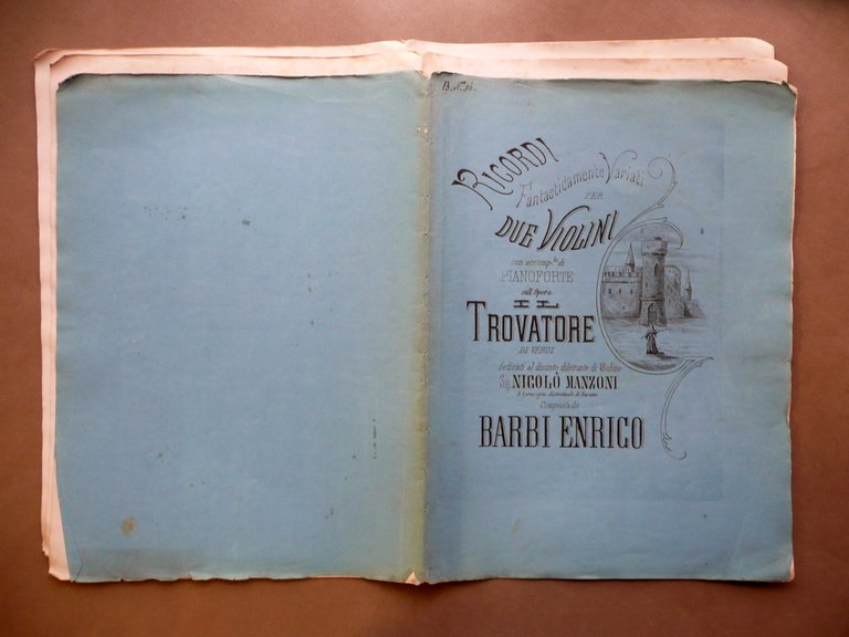 Spartito Fantasia Sopra Il Trovatore Verdi 2 Violini Barbi Trebbi Met‡ '800