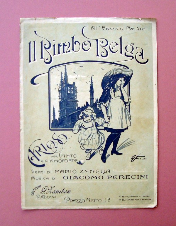 Spartito Il Bimbo Belga versi Zanella Musica Perecini Maestro Pigatti dis.Faccin