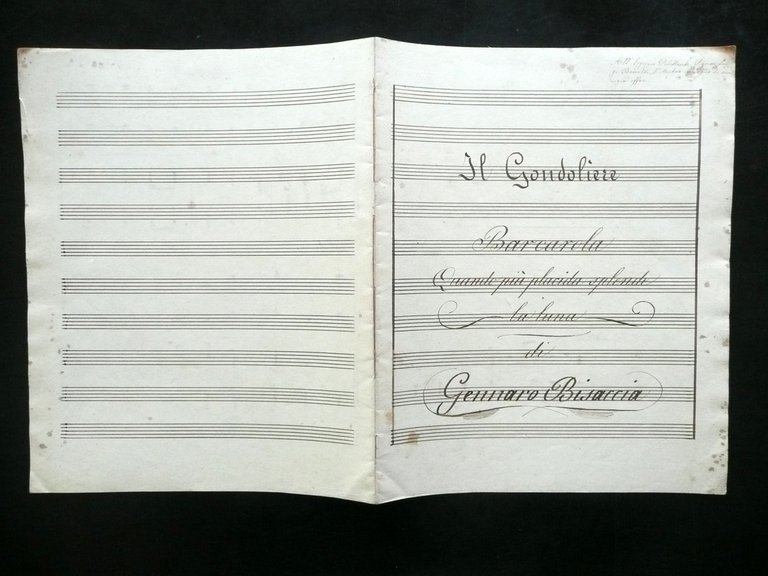 Spartito Manoscritto Il Gondoliere Barcarola G. Bisaccia Voce Baritono Autografo
