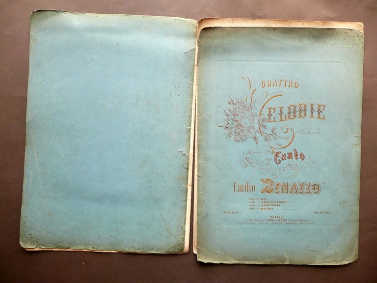 Spartito Quattro Melodie per Canto Pianoforte Emilio Benazzo Fine '800 Autografo