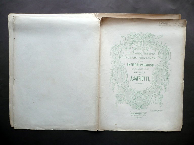 Spartito Un Fior di Paradiso Stornello A. Saffiotti Maddaloni Napoli Primo '900