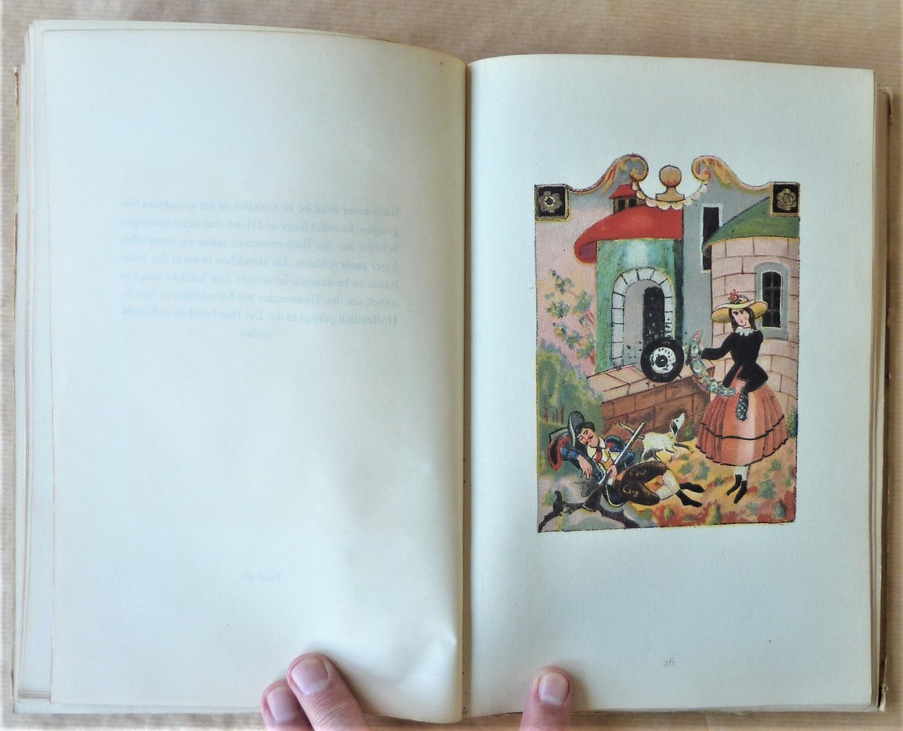 Un volume de format in 8° de 8 pp. (titre et 6 pp. d'introduction); 40 planches en couleurs de jouets d'enfants la plupart en bois; chacune accompagnée d'une serpente avec l'explication du sujet. Reliure cartonnée et illustrée de l'éditeur ; dos toilé. Texte en allemand. Les plats de couverture sont très défraîchis; les planches sont très fraîches. Voir les photos. Peu fréquent.