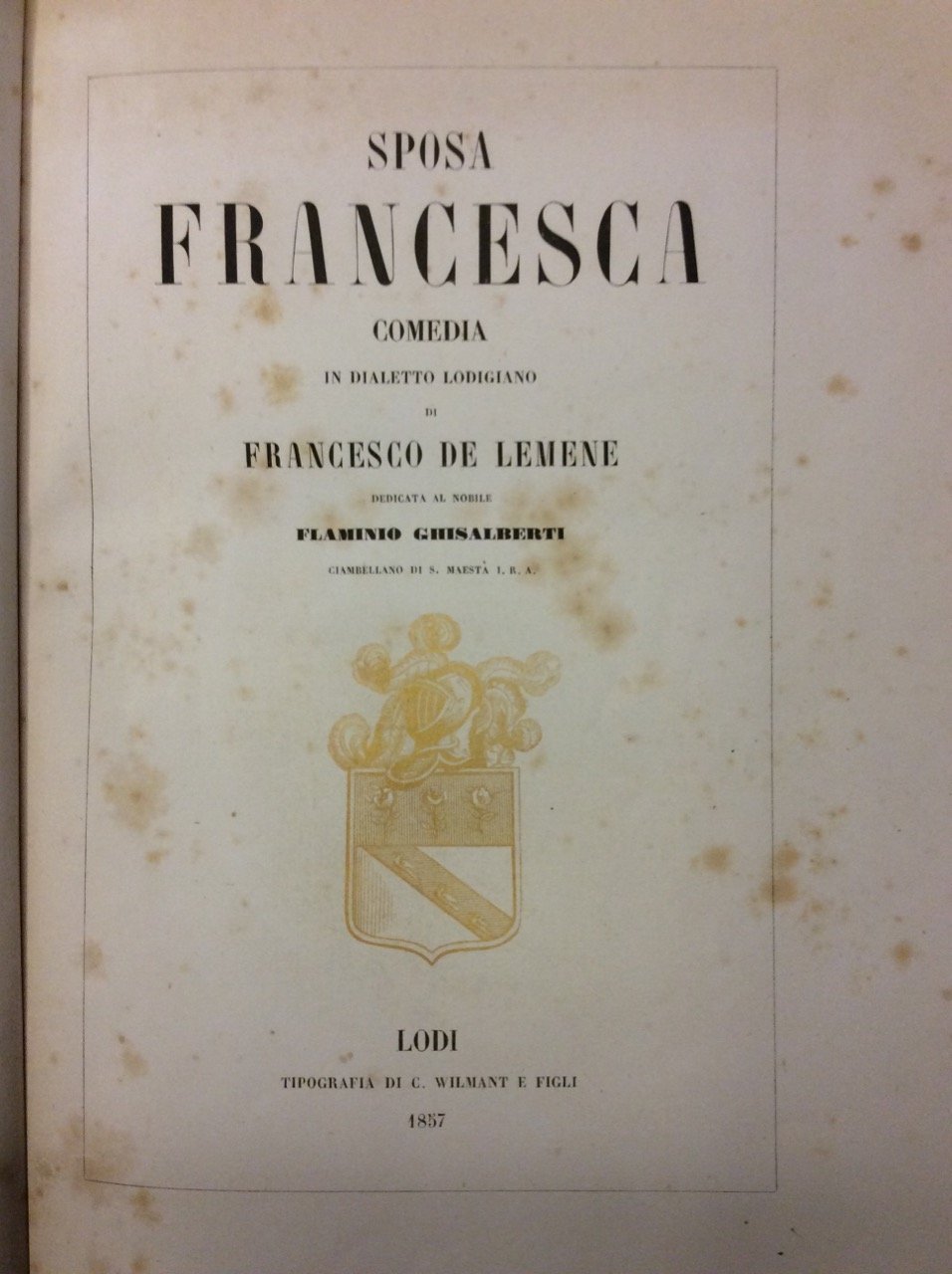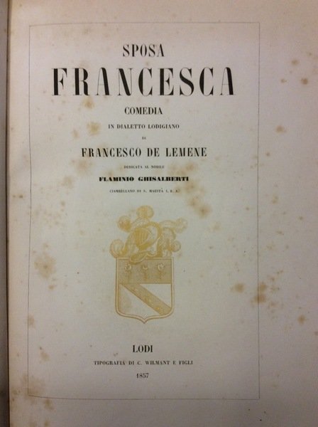 SPOSA FRANCESCA. - Comedia in dialetto lodigiano, dedicata al Nobile Flaminio Ghisalberti.
