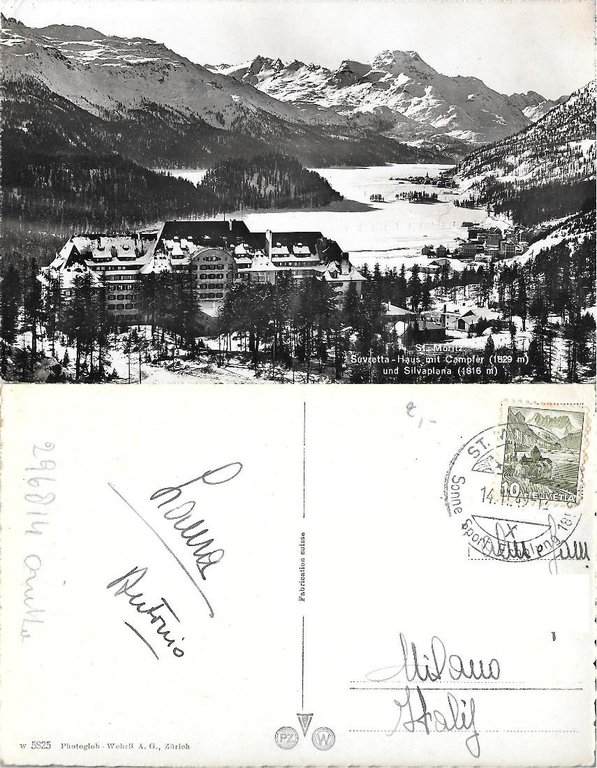 St.Moritz. Suvretta Haus mit Campfèr und Silvaplana Viaggiata 1949