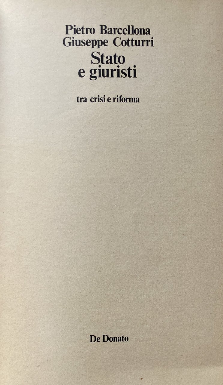 STATO E GIURISTI TRA CRISI E RIFORMA | Libros antiguos y modernos | Pietro Barcellona, Giuseppe Cotturri