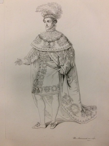 In folio (mm. 429x290), bella legatura in mz. pelle nera coeva, piatti in percallina di colore blu con ricca cornice dorata, tagli dorati, risg. in seta damascata, pp. 16 (testo tedesco); pp. (12) testo italiano; con 5 magnifiche tavole, inc. in rame e disegnate da Philipp von Stubenrauch, che raffigurano vesti dei Cavalieri dell'Ordine, decorazioni, medaglie, fregi. "Edizione originale" di questi statuti, suddivisi in 24 articoli. Tra gli ordini cavallereschi che prendono il nome dalla Corona e ora estinti, si trova l'Ordine della Corona di Ferro, del Regno d'Italia, istituito da Napoleone I nel 1805 per perpetuare il ricordo della sua incoronazione a re d'Italia, ripristinato, con nuovo statuto, per il regno Lombardo-Veneto dall'imperatore Francesco I nel 1816, poi incorporato tra gli ordini cavallereschi austriaci (così Diz. Encicl. Treccani,III, p. 544). Testo in tedesco fiorito; solo qualche fiorit. margin. su quello italiano, fresche e molto ben conservate le tavole.