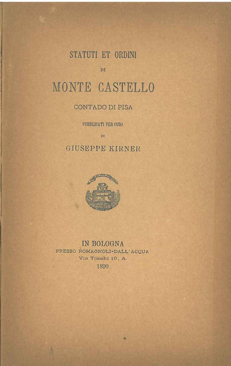 Statuti et ordini di Monte Castello contado di Pisa pubblicati per cura di Giuseppe Kirner. Scelta di curiosità letterarie inedite o rare dal secolo XIII al XVII in appendice alla collezione di opere inedite e rare