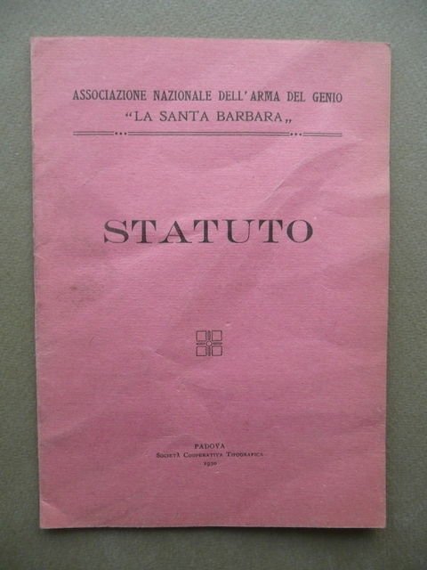 Statuto Associazione Nazionale Arma Del Genio La Santa Barbara Padova 1930