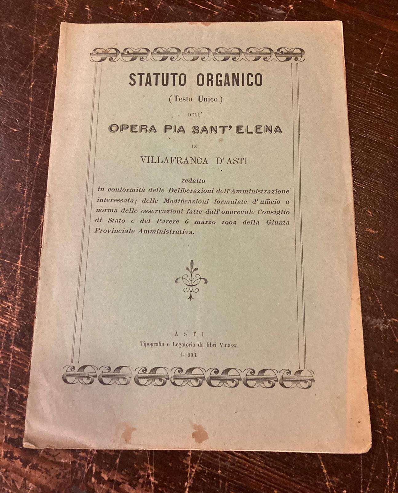 Statuto organico (testo unico) dell'Opera pia Sant' Elena in Villafranca d' Asti | Libros antiguos y modernos |