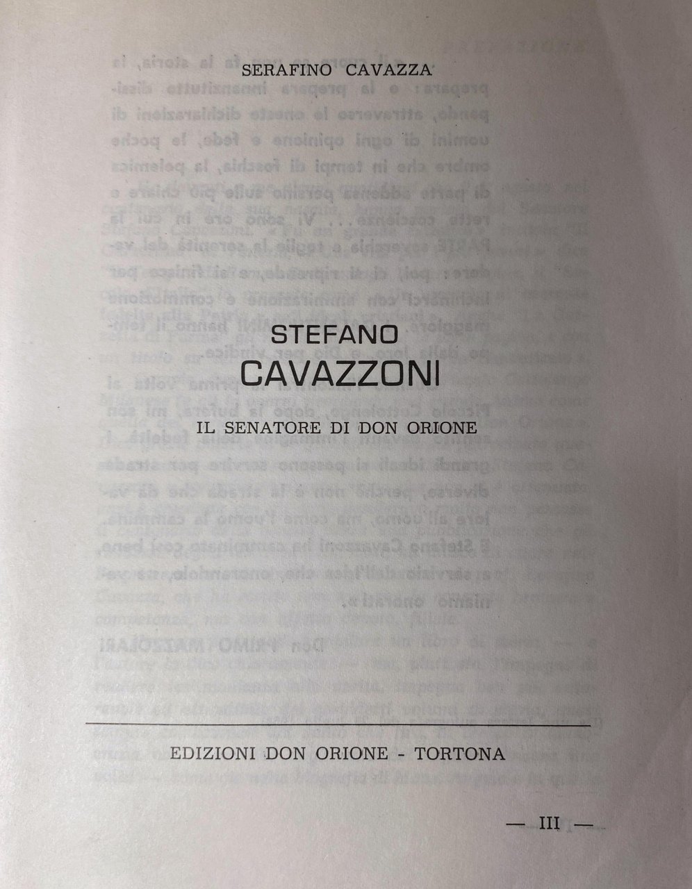 STEFANO CAVAZZONI: IL SENATORE DI DON ORIONE