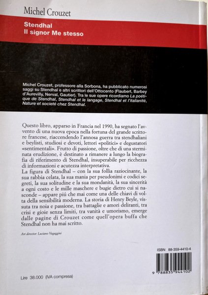 Michel Crouzet, professore alla Sorbona, ha pubblicato numerosi saggi su Stendhal e altri scrittori dell'Ottocento (Flaubert, Barbey d'Aurevilly, Nerval, Gautier). Tra le sue opere ricordiamo La poétique de Stendhal, Stendhal et le langage, Stendhal et l'italianité, Nature et societé chez Stendhal. Questo libro, apparso in Francia nel 1990, ha segnato l'avvento di una nuova epoca nella fortuna del grande scrittore francese, riaccendendo l'annosa guerra tra stendhaliani e beylisti, studiosi e devoti, lettori «politici» e degustatori «sentimentali». Frutto di passione, oltre che di una sterminata erudizione, é destinato a rimanere a lungo la biografia di riferimento di Stendhal, insuperabile per ricchezza di informazioni e acutezza interpretativa. La figura di Stendhal - con la sua follia raziocinante, la sua rabbia celata, la sua mania per pseudonimi e codici segreti, la sua solitudine e la sua mondanità, la sua sincerità a ogni costo e le mille maschere e bugie dietro cui si nasconde - appare più che mai come una delle chiavi di volta della sensibilità moderna. La storia di Henry Beyle, vissuta tra noia e passione, tra battaglie e amori deliranti, tra crisi e gioie senza limiti, tra vanita e umorismo, emerge dalle pagine di Crouzet come quell'opera buffa che Stendhal non ha mai scritto.
