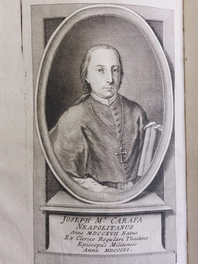 In-8° (cm. 22,1), legatura coeva in cartonato d'attesa (dorso rinforzato e sguardie rinnovate); pp. [12] XIII [1] 528 [2] in barbe, in ottimo stato, con 5 tavole di ritratti in rame fuori testo (comprensivi dell'antiporta con l'effigie del dedicatario Giuseppe Carafa); difetto di stampa alla prima carta del catalogo cronologico, mancanza dell'occhietto. Eleganti testatine, capilettera e finalini silografici; vignetta incisa in rame da Giambattista Brustolon al frontespizio con titoli in rosso e nero. Volume interessante e non comune dello storico bassanese, ultima parte della collana sulla vita degli eresiarchi del primo, secondo e terzo secolo dopo Cristo pubblicata in 5 voll. dal 1752 al 1762. Esemplare molto buono. (NF4)