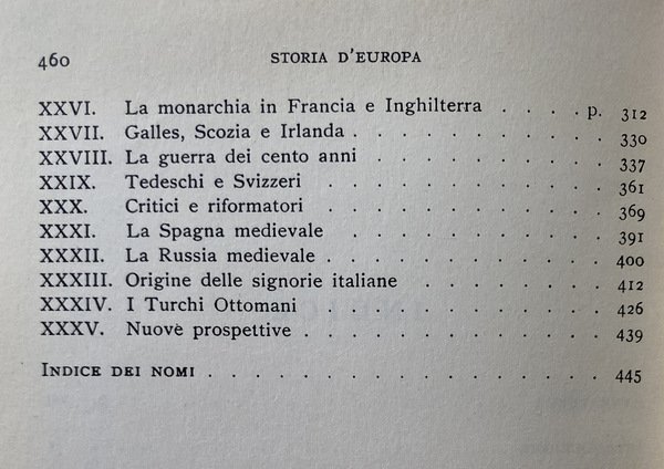 Soggetti: Storia medievale, Storiografia, Metodologia, Guide, Classici, Riferimento, Consultazione, Letteratura storica, Bibliografia, Età moderna, Ideologie politiche, Dinamiche storiche, Periodi storici, Medioevo, Antichità, Storia europea, Manuali, Cronologia, Guerre, Crociate, Conquiste, Medievistica, Critica, Interpretazione, Stati, Stato moderno, Modernità, Cristianesimo, Lotte, Rivolte, Ordini monastici, Potere spirituale, Potere temporale, Secolarizzazione, Protestantesimo, Riforma, Chiesa, Lutero, Papa, Papato, Regni, Imperi, Carlo Magno, Filippo II, Nuovo Mondo, Scoperte geografiche, Investiture, Contadini, Ceti sociali, Feudalesimo, Commercio, Scambi commerciali, Mercanti, Spezie, Asia, Diplomazia, Monarchia assoluta, Assolutismo, Re, Regine, Privilegi, Guerra dei Cento Anni, Inghilterra, Italia, Spagna, Francia, Germania, Portogallo, Paesi Bassi, Olanda, Lega anseatica, Controriforma, Concilio di Trento, Analisi, Fatti storici, Adolfo Omodeo, Storici britannici, Guizot, Civiltà europea, Radici culturali, Unità, Invasioni barbariche, Campagna, Agricoltura, Peste, Epidemie, Carestie, Schiavitù, Preistoria, Neolitico, Antica Grecia, Impero romano, Imperatori, Magna Graecia, Sicilia, Peloponneso, Atene, Sparta, Impero Persiano, Persia, Democrazie, Africa, Egitto, Pax romana, Persecuzioni religiose, Colonialismo, Colonizzazione, Imperialismo, India, Americhe, Cristoforo Colombo, Magellano, Aragona, Siviglia, Castiglia, Mercantilismo, Economia, Capitalismo, Oro, Ellenismo, Oriente, Costantinopoli, Bisanzio, Impero bizantino, Ebraismo, Ebrei, Arabi, Saraceni, Turchi, Impero Ottomano, Maometto, Islam, Roma, Giulio Cesare, Pompeo, Triumvirato, Optimates, Esercito, Senato, Repubblica, Magistratura, Cittadinanza, Libertà, Annibale, Ellade, Movimenti intellettuali, Università, Medicina, Progresso, Scienza, Parigi, Bologna, Salerno, Oxford, Formazione, Diritto, Monasteri, Trasformazioni sociali, Decadenza, Declino, Monachesimo, Filosofia, Clero, Papi, Potenze, Comuni, Corporazioni, Gerusalemme, Alessandro il Grande, Aristotele, Baldovino, Carolingio, Attila, Capetingi, Pipino il breve, Ottone, Basilio, Avignone, Dante Alighieri, Eduardo III, Enrico, Tacito, Urbano, Tudor, Mary Stuart, Cartagine, Diocleziano, Costantino, Giustiniano, Franchi, Federico Barbarossa, Innocenzo III, Hohenstaufen, Quarta crociata, Invasioni germaniche, Vichinghi, Sassoni, Salici, Galles, Scozia, Irlanda, Russia, Zar, Signorie italiane, Nobiltà, Aristocrazia, Medieval history, Historiography, Methodology, Guides, Classics, Reference, Consultation, Historical literature, Bibliography, Modern age, Political ideologies, Historical dynamics, Historical periods, Middle Ages, Antiquity, European history, Manuals, Chronology, Wars, Crusades, Conquests, Medieval, Criticism, Interpretation, States, Modern state, Modernity, Christianity, Struggles, Revolts, Monastic orders, Spiritual power, Temporal power, Secularization, Protestantism, Reform, Church, Luther, Pope, Papacy, Kingdoms, Empires, Charlemagne, Philip II, New world, Geographical discoveries, Investitures, Peasants, Social classes, Feudalism, Commerce, Trade, Merchants, Spices, Asia, Diplomacy, Absolute monarchy, Absolutism, Kings, Queens, Privileges, Hundred Years War, England, Italy, Spain, France, Germany, Portugal, Netherlands, Holland, Hanseatic League, Counter-Reformation, Council of Trent, Analysis, Historical facts, Adolfo Omodeo, British historians, Guizot, European civilization, Cultural roots, Unity, Barbarian invasions, Countryside, Agriculture, Plague, Epidemics, Famine, Slavery, Prehistory, Neolithic, Ancient Greece, Roman empire, Emperors, Sicily, Peloponnese, Athens, Persian empire, Persia, Democracies, Egypt, Religious persecutions, Colonialism, Colonization, Imperialism, Americas, Christopher Columbus, Magellan, Aragon, Seville, Castile, Mercantilism, Economy, Capitalism, Gold, Hellenism, Orient, Constantinople, Byzantium, Byzantine Empire, Judaism, Jews, Arabs, Saracens, Turks, Ottoman empire, Mohammed, Rome, Julius Caesar, Pompey, Triumvirate, Army, Senate, Republic, Judiciary, Citizenship, Freedom, Hannibal, Hellas, Intellectual movements, University, Medicine, Progress, Science, Paris, Formation, Law, Monasteries, Social transformations, Decline, Decline, Monasticism, Philosophy, Clergy, Popes, Powers, Municipalities, Corporations, Jerusalem, Baldwin, Capetian, Pippin the short, Basilius, Avignon, Eduard, Henry, Tacitus, Herodotus, Carthage, Diocletian, Constantine, Justinian, Fourth crusade, Germanic invasions, Vikings, Saxons, Wales, Scotland, Ireland, Tsars, Italian Lordships, Nobility, Aristocracy