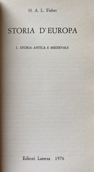STORIA D'EUROPA VOLUME 1: STORIA ANTICA E MEDIEVALE | Libros antiguos y modernos | Herbert Albert Laurens (H.A.L.) Fisher
