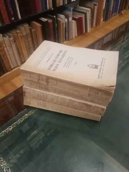 In-8 p., 4 volumi, bross. orig., pp. 395; 458,(2); 308; 454,(2). L'opera è così suddivisa: La storia politica degli Ebrei dal 63 A.C. al 135 D.C. - Le condizioni sociali e morali interne del popolo ebreo. Le idee teologiche degli Ebrei. Il paganesimo ai tempi del Nuovo Testamento. Terza ristampa. Ben conservato.