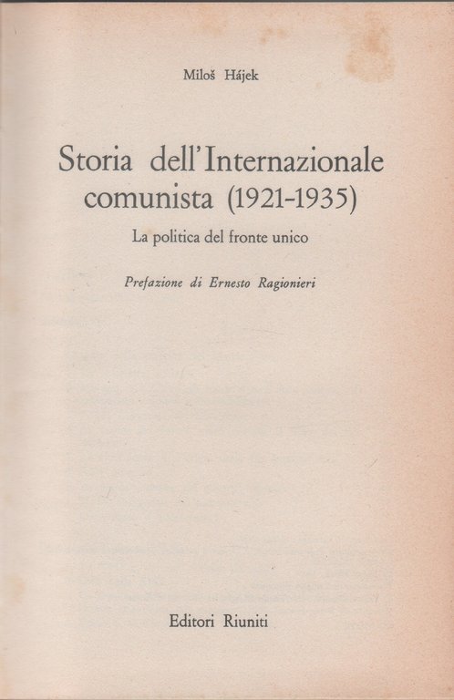 Storia dell'Internazionale Comunista (1921-1935). La politica del Fronte - Milos Hajek