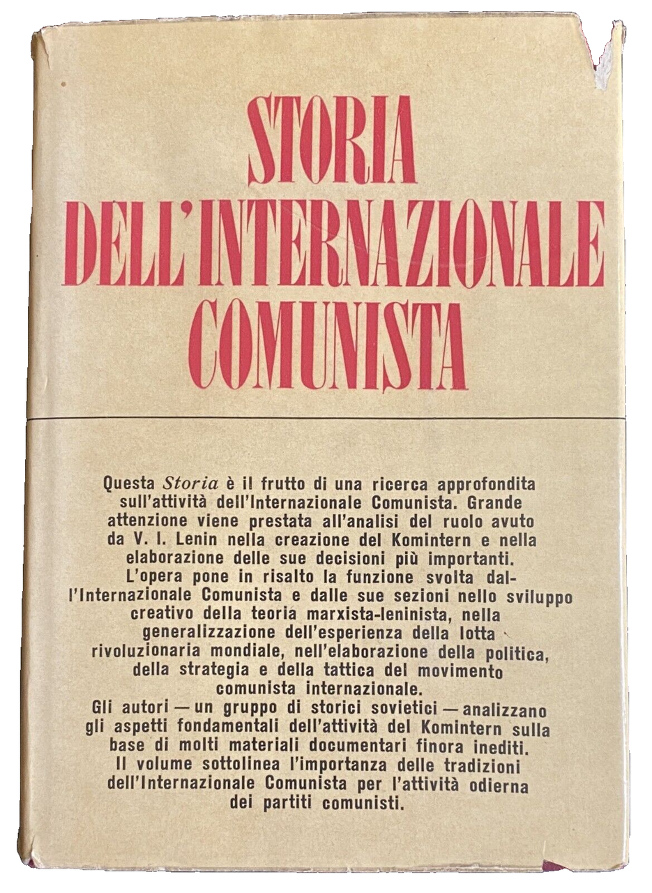 Soggetti: Storia contemporanea, Comunismo, Ideologie politiche, Collezionismo, Libri rari Vintage fuori catalogo, Internazionale comunista, Partito comunista, Documenti Sinistra Unione Sovietica Anni Settanta Russia, Manifesto Rivoluzione bolscevica Proletariato Lotta di classe Marx Engels Stalinismo Aldo Agosti Miloš Hájek Paolo Spriano Giorgio Amendola Ernesto Ragionieri Bolscevizzazione Amadeo Bordiga Borghesia Bucharin Capitalismo Cecoslovacchia Fabbrica Classe operaia Comintern Comitato centrale esecutivo Compagni Compito Conferenze Congressi Conquista CPGB Crisi IKKI Democrazia Destra Deviazioni Direzione Dittatura Economia Fascismo Forze Fronte unico Germania Governo Gran Bretagna Gruppo dirigente Guerra imperialistica KSC Unità Labour Party Laburisti Lavoro Maggioranza Marxismo-leninismo Masse Membri Movimento operaio Sindacati Contadini Dawes Politica estera Posizione Potere Propaganda Proprietà privata Pianificazione economica NEP Questione ebraica Riformisti RKP Sciopero Sindacalismo Socialdemocrazia Socialismo Stalin Tattica Trotskij Trotskismo Vittoria VKP Zinovjev Dolores Ibarruri Antonio Gramsci Ruggero Grieco Nemici Mosca Bela Kun Bolscevichi Brest-Litowsk Capitalismo Capitale finanziario Carlo Liebknecht Colonie Berna Congresso Consigli Costituzione Repubblica Austria Inghilterra Intesa Democrazia borghese Dominio Francia Guerra civile Lega dei popoli Lavoratori Produzione Resistenza Ottobre Rosa Luxemburg Sfruttamento Sistema Soviet SPARTACUS Svizzera Terrore bianco Terza Centralismo burocrazia Repubbliche sovietiche Egidio Gennari Umberto Terracini Mauro Scoccimarro Angelo Tasca Giuseppe Berti Luigi Longo Giuseppe Boffa Mezdunarodnoe kommunisticeskoe dvizenije Bezborodov N. V. Eliseeva Istorija Kommunisticeskoj partii Sovetskogo Sojuza Georgi Dimitrov Lenin Jules Humbert-Droz Kermit E. McKenzie Comintern Nicos Poulantzas Helmut Konig Fernand Claudín Jane Degras Ottorino Perrone Giancarlo De Regis Svolta Saggi Discussioni Dibattiti Edward H. Carr Imperialismo Kautsky Questione femminile Rudi Dutschke Lukacs Questione agraria Kulaki Miseria Ricchezza Stato Claudio Natoli Natalija Lebedeva Michail Narinskij Komintern Seconda guerra mondiale Elena Dundovich Repressione Antifascisti URSS Anni Trenta Anni Quaranta Anni Venti Novecento Bibliografia Riferimento Isolazionismo Versailles Serge Wolikow Cominform Baku Opere complete Emancipazione Alexander Höbel Georgi Dimitrov Bureau Europa Manuil'skij Sebald Rutgers Henriette Roland-Holst David Wijnkoop Polizia Karl Radek Thomas Bronskij Zinov'ev Clara Zetkin Plenum Elezioni Disfattismo Cellule Filosofia Programma Storiografia Internazionalismo Krupskaja Materialismo Storico Institut marksizma-leninizma Hitler Mussolini Paul Levi Léon Blum Finlandia Ungheria Lavori Robert Grimm Sciopero Rossi Maurice Thorez Kamenev Ossinsky Krapotkin Siberia Sofia Perovskaia Crimea Comune Parigi Socialismo scientifico Kostylev Togliatti Molotov-Ribbentrop Hitler Contemporary history Communism Political ideologies Collectibles Rare books out of print Communist International Communist Party Documents Left Soviet Union 1970s Bolshevik Revolution Proletariat Struggle Bolshevization Bourgeoisie Capitalism Czechoslovakia Factory Working class Central Executive Committee Comrades Task Conferences Congresses Conquest Crisis Democracy Right Wing Deviations Management Dictatorship Economy Fascism Forces United Front Germany Government Great Britain Leadership Group Imperialist War Unity Majority Marxism-Leninism Masses Members Labor Movement Trade Unions Peasants Foreign Policy Position Power Private Property Economic Planning Jewish Question Reformists Strike Trade Unionism Social Democracy Socialism Tactics Trotsky Trotskyism Victory Enemies Moscow Bolsheviks Capitalism Financial Capital Colonies Bern Congress Councils Constitution Republic England Entente Bourgeois Democracy Domination France Civil War League of Peoples Workers Production Resistance October Exploitation System Switzerland White Terror Third Centralism Bureaucracy Soviet Republics Turning Point Essays Discussions Debates Imperialism Women's Question Agrarian Question Poverty Wealth State Second World War Repression Antifascists USSR 1930s Forties Twenties Twentieth Century Bibliography Reference Isolationism Complete Works Emancipation Europe Police Elections Defeatism Cells Philosophy Program Historiography Internationalism Historical Materialism Finland Hungary Working Red Strike Municipality Paris Scientific Socialism