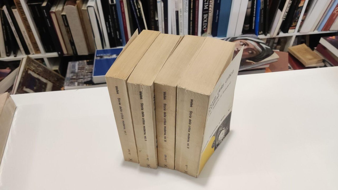 Wellek - Storia della critica moderna 4 volumi Il Mulino 1978 Libro in ottime condizioni, minimi segni del tempo: minimi segni, leggermente ingialliti al dorso e ai tagli, rare sottolineature a matita. Non esitate a contattarci per altre foto o richieste. Saremo lieti di soddisfare ogni vostra esigenza.