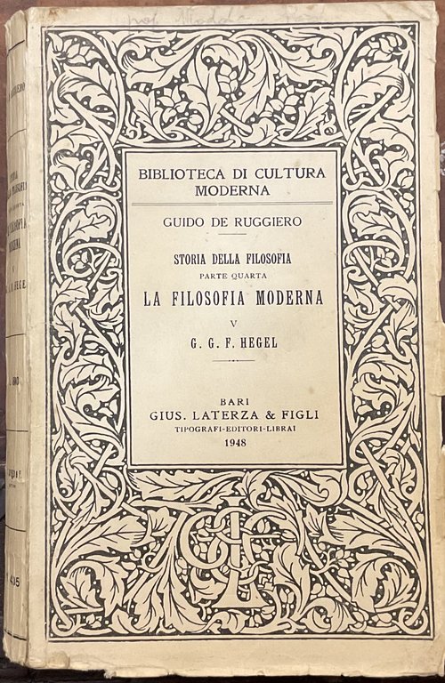 Storia della Filosofia. Parte quarta. La Filosofia Moderna. Volume V. G.G.F Hegel