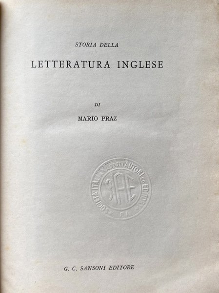 STORIA DELLA LETTERATURA INGLESE | Libros antiguos y modernos | Mario Praz