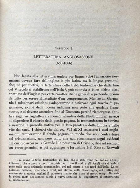 Opera di uno dei massimi anglisti italiani del Novecento, privilegia le correnti letterarie, lasciando sullo sfondo le discipline filosofiche e storiche e gli autori minori.