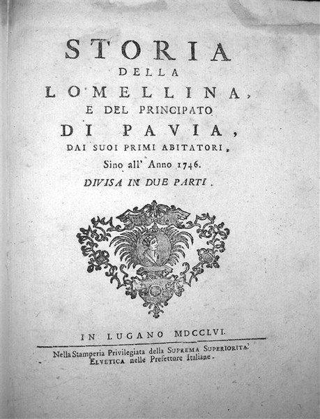 STORIA DELLA LOMELLINA e del principato di Pavia, dai suoi primi abitatori, sino all'anno 1746. Divisa in due parti.
