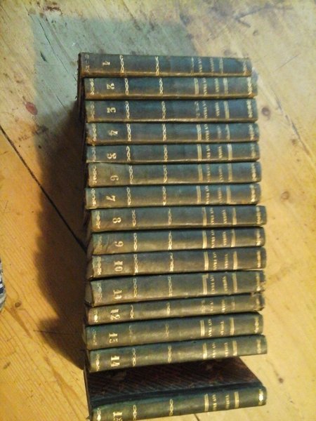 Prima traduzione italiana dall'Edizione di Parigi del 1834 di Ermenegildo Potenti.<BR>15 voll. in 16°, pp. 266 (4); (2) 266 (2); 310 (2); 292; 235 (1); 304; 288; 272; 267 (1); 264; 290 (2); 228; 294 (2); 250 (2); 313 (3) + 28 (delle 30) incisioni in rame f.t. con i ritratti. Legature coeve in mz. pelle con tit. oro al dorso. I ritratti sono staccati dal testo. Difetti non deturpanti alle legat. (piccole abrasioni, forellini di tarlo, piccoli strappi). A causa dell'umidità il 1° vol. presenta evidenti difetti al piatto post. e un alone che interessa gran parte del testo.