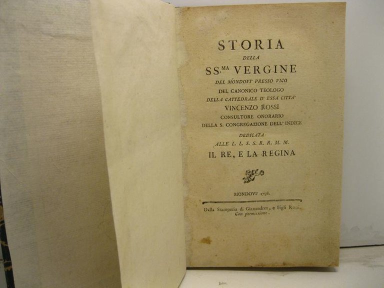 Storia della SS.ma Vergine del Mondovi' presso Vico del canonico teologo della cattedrale d'essa citta' consultore onorario della S. Congregazione dell'Indice dedicata alle L.L. S.S. R.R. M.M. il Re e la Regina