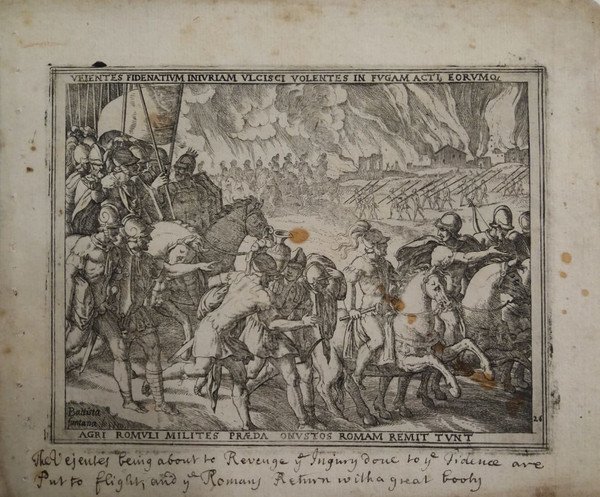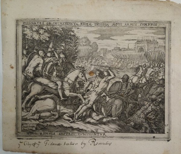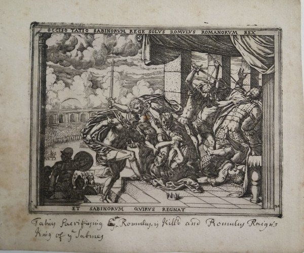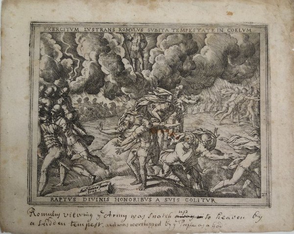 Serie di 24 (su 27) incisioni, acquaforte e bulino (mancano le tavole n. 17-21-23). Opera originariamente dedicata all'Arciduca d'Austria Ferdinando II. Bibliografia: BARTSCH XVI - 231.45. Misure: cm. 19x14,5 alla battuta; il foglio: cm. 21/22,5x19. Iscrizione in latino entro cornice tipografica, tavole numerate e firmate in lastra. Curiosa traduzione manoscritta in inglese a piè di pagina, ad eccezione delle tavole n. 16 e 18, probabilmente coeva. Al verso di tre incisioni, ci sono altrettanti disegni in matita rossa (vedi foto). Antico rinforzo all'angolo superiore della tavola n. 1, qualche ossidazione perlopiù nei margini bianchi alla prima, seconda e ultima tavola. Buona l'inchiostratura. Rara raccolta di incisioni, difficile a trovarsi completa. Codice inv.1030331