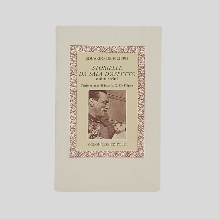 Arti Grafiche «Il Cerchio». In-24° (cm 14,5), pp. 109 (3). Collana Lo Specchio di Silvia, 40. Naturali “segni del tempo” alla copertina. In buone condizioni. Raro. Eduardo de Filippo amava i libri antichi: «I moderni li leggo qualche volta, ma non mi sorprendono mai» Brevi appunti autobiografici, insieme al racconto di situazioni grottesche còlte frequentando qualche studio medico; poi, ricette gastronomiche in versi napoletani – in «Si cucine comme vogli’i’» – riportati in lingua da Renato De Falco; un’intervista sul “tramonto del libro”. Infine una manciata di riflessioni sulla vita, sulla famiglia e sul teatro, in una raccolta di scritti che confermano Eduardo quale osservatore acuto delle fratture dell’esistenza. Il racconto Storielle da sala d’aspetto è apparso la prima volta sul periodico «l’Illustrazione del medico», n. 54, Milano, gennaio 1939.