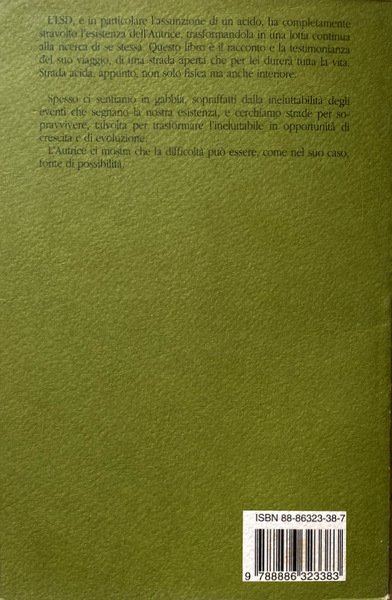 Questo libro è il racconto e la testimonianza del suo viaggio, di una strada aperta che per lei durerà tutta la vita, Strada acida, appunto, non solo fisica ma anche interiore. Spesso ci sentiamo in gabbia, sopraffatti dalla ineluttabilità degli eventi che segnano la nostra esistenza, e cerchiamo strade per sopravvivere, talvolta per trasformare l'ineluttabile in opportunità di crescita e di evoluzione.