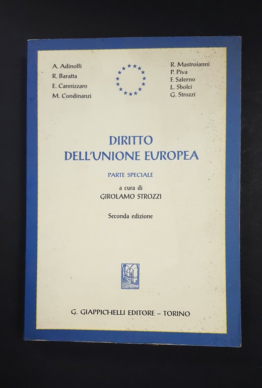 Strozzi Girolamo (a cura di). Diritto dell'Unione Europea. Parte speciale Giappichelli Editore. 2005. In-8. Brossura. pp. 506