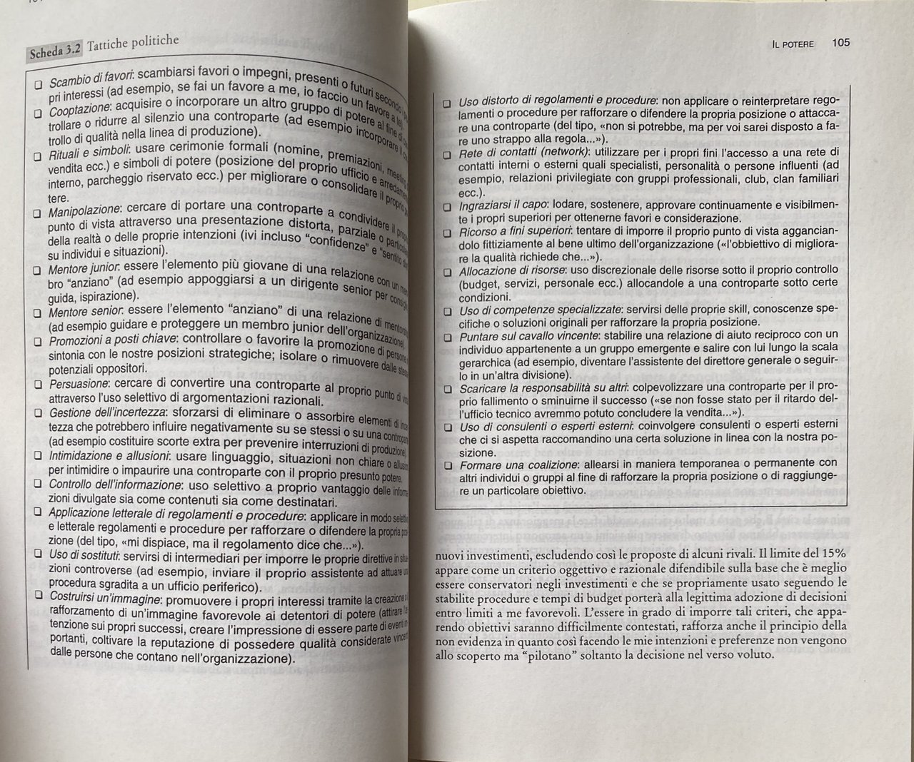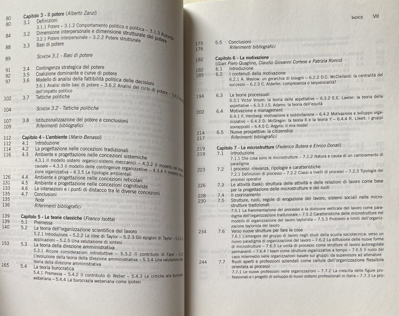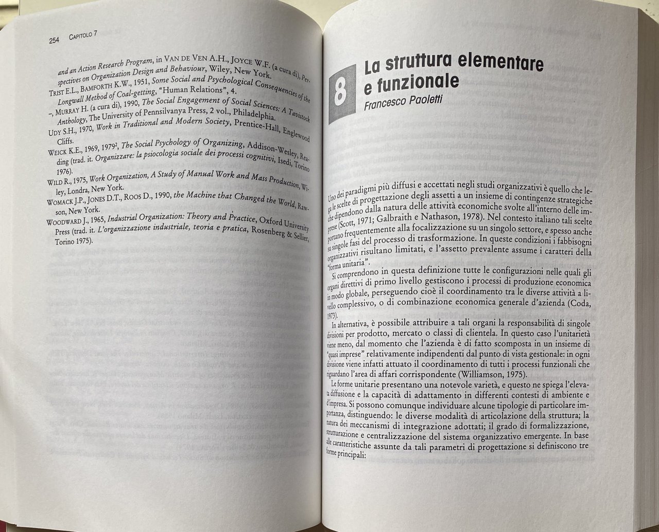 Soggetti: Manuali universitari, Economia aziendale, Impresa, Strategia, Gestione, Amministrazione, Comunicazione, Marketing, Management, Diritto, Lavoro, Studi generali, Bibliografia, Riferimento, Libri fuori catalogo, Università, Teoria organizzativa, Manager, Prassi manageriale, Tecnologie informatiche, Comportamento, Tattiche politiche, Strumenti, Microstrutture Casi studio Alitalia Idea Business Piano industriale Previsioni Grafica Rappresentazione Skill chart Sinergogramma Mansionario Mappa Competenze Filosofia delle scienze Organizzazione scientifica Teorie processuali sociologiche economiche Differenziazione Integrazione Cultura Mentalità Radicalismo postmoderno Riduzionismo Pragmatismo Fattibilità Potere Analisi Decisioni Modelli tradizionali Ambiente Progettazione Concezioni reticolari Sistemi Direzione Taylor Fayol Max Weber Burocrazia McClelland Alderfer E.E. Lawler Victor Vroom J.S. Adams F. Herzberg R. Likert D. McGregor Chris Argyris Gruppi Citizenship Ruoli Task Attività Paradigma Sociotecnica Italia Flessibilità Figure professionali Motivazione Sviluppo Soddisfazione Gerarchia Bisogni Aspettative Divisione Forme semplici Innovazione Vantaggio competitivo Valutazione Risorse umane Risultati Adhocrazia Matrice Commercializzazione Category Trade Ricerche di mercato Consumi Nuovi prodotti Costi Transazione Variabili O.E. Williamson Startup Alleanze Avvio Franchising Cooperazione Competitività Leadership Know how Servizi Procedure Esperienza Coordinamento Controllo Flessibilità Psicologia Partecipazione Collaborazione Rigidità Organizational climate Mappa cognitiva Thorndike Merton Affidabilità Circolo vizioso Comportamentismo Clienti Relazioni Gouldner Urwick Simon Autorità Equità Comando Accentramento Disciplina Responsabilità Ordine Dipendenti Personale Armonia Interesse Mobilità Vendite Fatturato Obiettivi Target Rivalità Competitor Ricavi Profitto Investimenti Mansioni Pubblicità Consulenze Promozioni Crescita Goal Setting Procedural Justice Mayo Herzberg Seiler Lawrence Lorsche Job Formazione Coaching Training Piramide Maslow Rugiadini Airoldi Brunetti Coda Atkinson Pinder Steer Porter Avallone Ricompensa Incentivi Barnard Enrichment Feedback Status Successo Identificazione Superiori Galbraith Empowerment Regole M. Decastri G. Gabrielli S. Profili Igiene University textbooks Business economics Strategy Management Administration Communication Law Labor General studies Bibliography Reference Books out of print University Organizational theory Managerial practice Information technologies Behavior Political tactics Tools Microstructures Case studies Industrial plan Forecasts Graphics Representation Synergogram Job description Map Skills Philosophy of science Scientific organization Sociological process theories economic Differentiation Integration Culture Mentality Postmodern radicalism Reductionism Pragmatism Feasibility Power Analysis Decisions Traditional models Environment Design Reticular conceptions Systems Management Bureaucracy Groups Roles Activities Sociotechnics Italy Flexibility Professional figures Motivation Development Satisfaction Hierarchy Needs Expectations Division Simple forms Innovation Competitive advantage Evaluation Human resources Results Adhocracy Matrix Commercialization Market research Consumption New products Costs Transaction Variables Alliances Start-up Cooperation Competitiveness Services Procedures Experience Coordination Control Flexibility Psychology Participation Collaboration Rigidity Cognitive map Reliability Vicious circle Behaviorism Customers Relationships Authority Equity Command Centralization Discipline Responsibility Order Employees Staff Harmony Interest Mobility Sales Turnover Objectives Rivalry Competitors Revenues Profit Investments Duties Advertising Consulting Promotions Growth Training Pyramid Rewards Incentives Success Identification Superiors Rules Hygiene