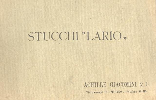 STUCCHI "LARIO". Catalogo della Ditta Achille Giacomini & C., Via Borromei, 11 - Milano. Inizi XX secolo.