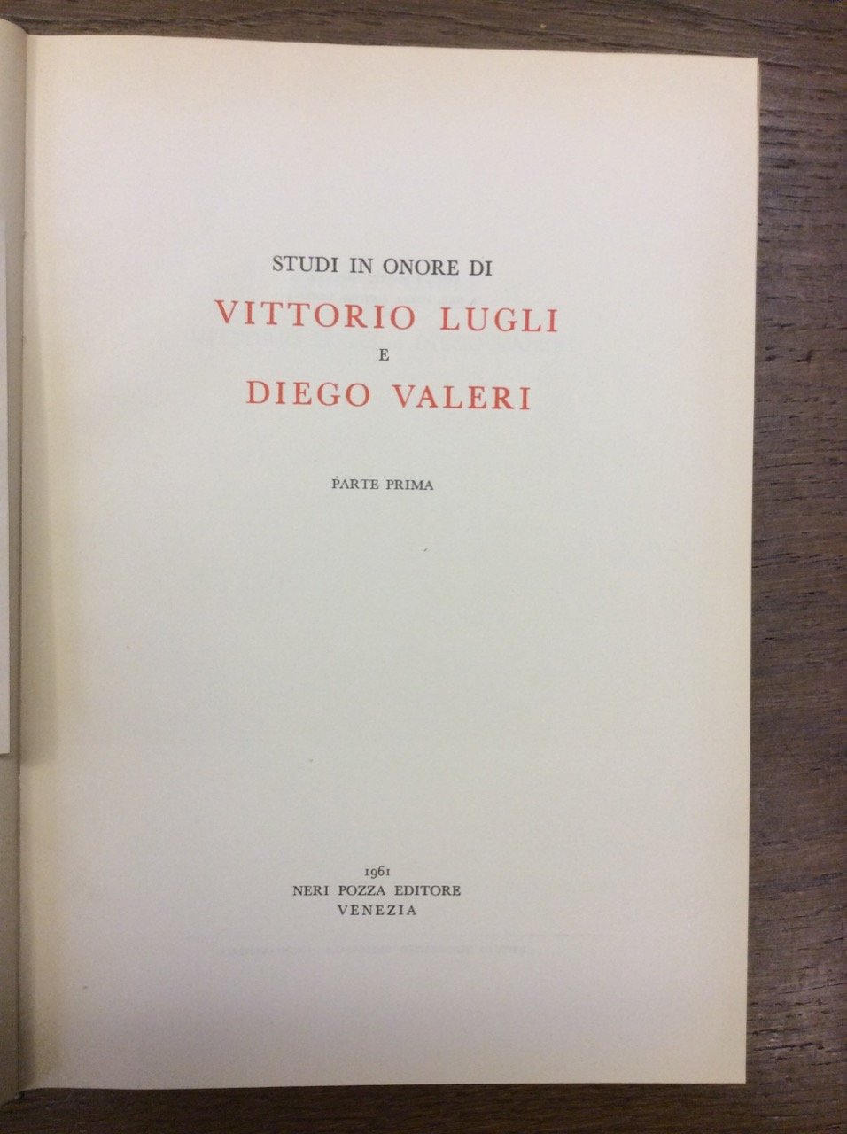 STUDI IN ONORE DI VITTORIO LUGLI E DIEGO VALERI.